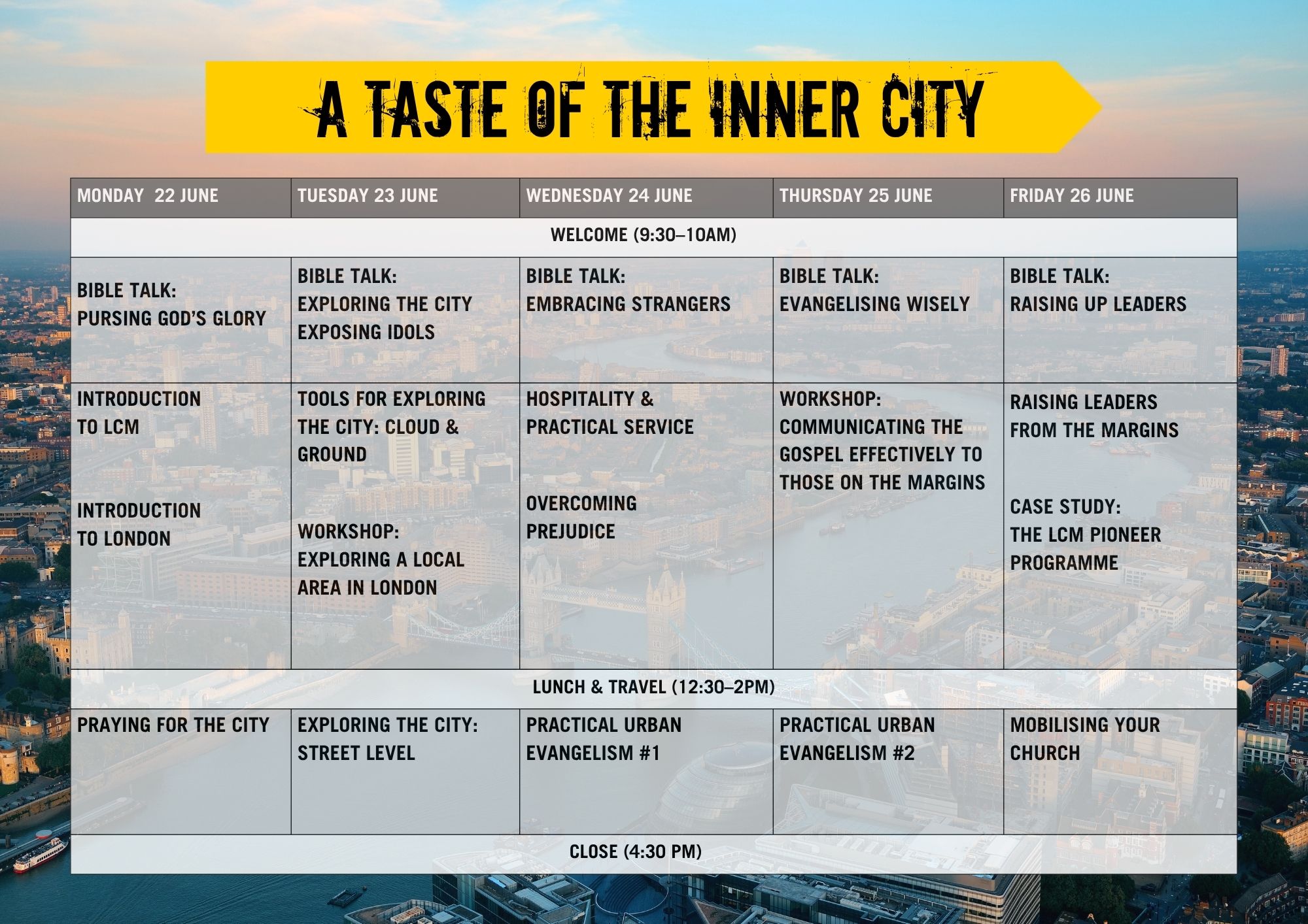 The LCM Summer School is a week-long training programme equipping church leaders and mission workers with practical tools for effective urban mission.
